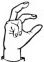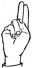 На ћирилици написано ВИКТОРИЈА КУРМАЗОВИЋ састоји се из 19 слова [?]. Исписано ћириличном једноручном азбуком за глувонеме: